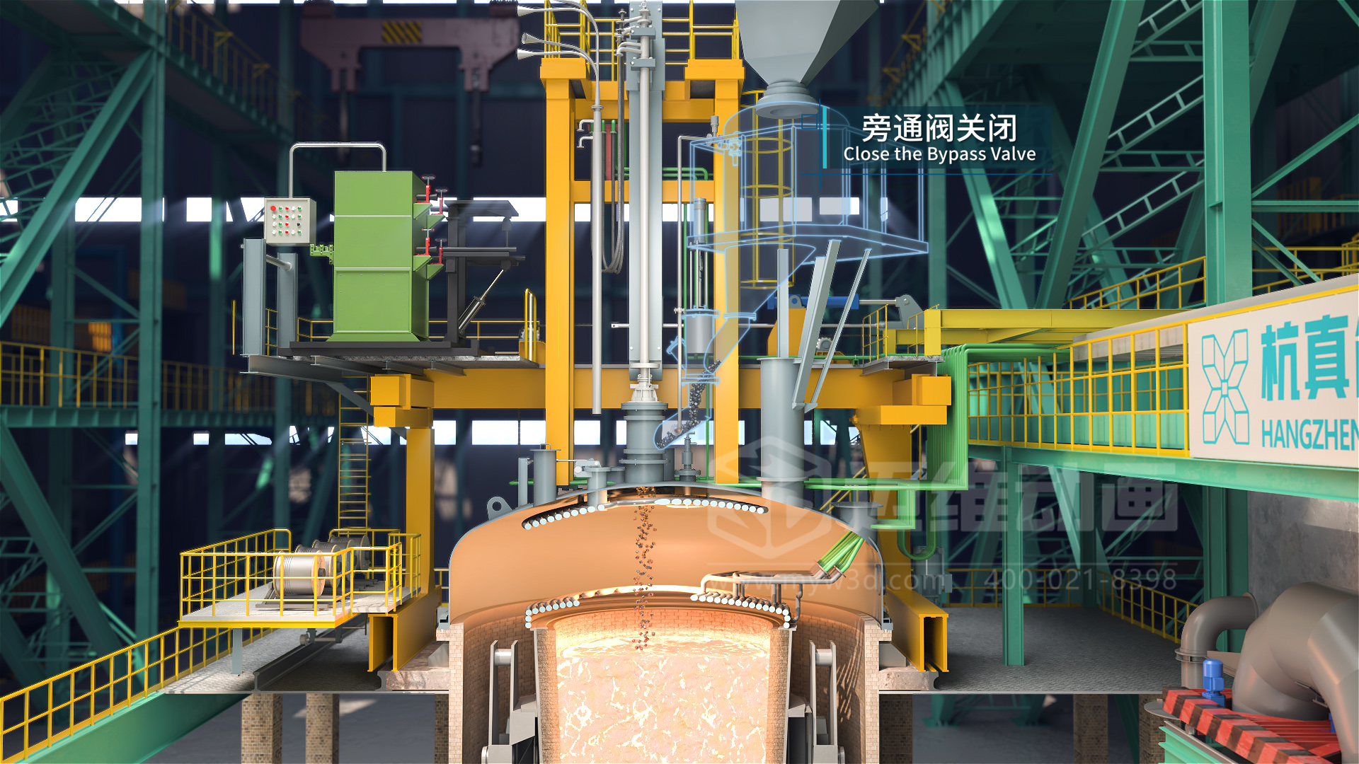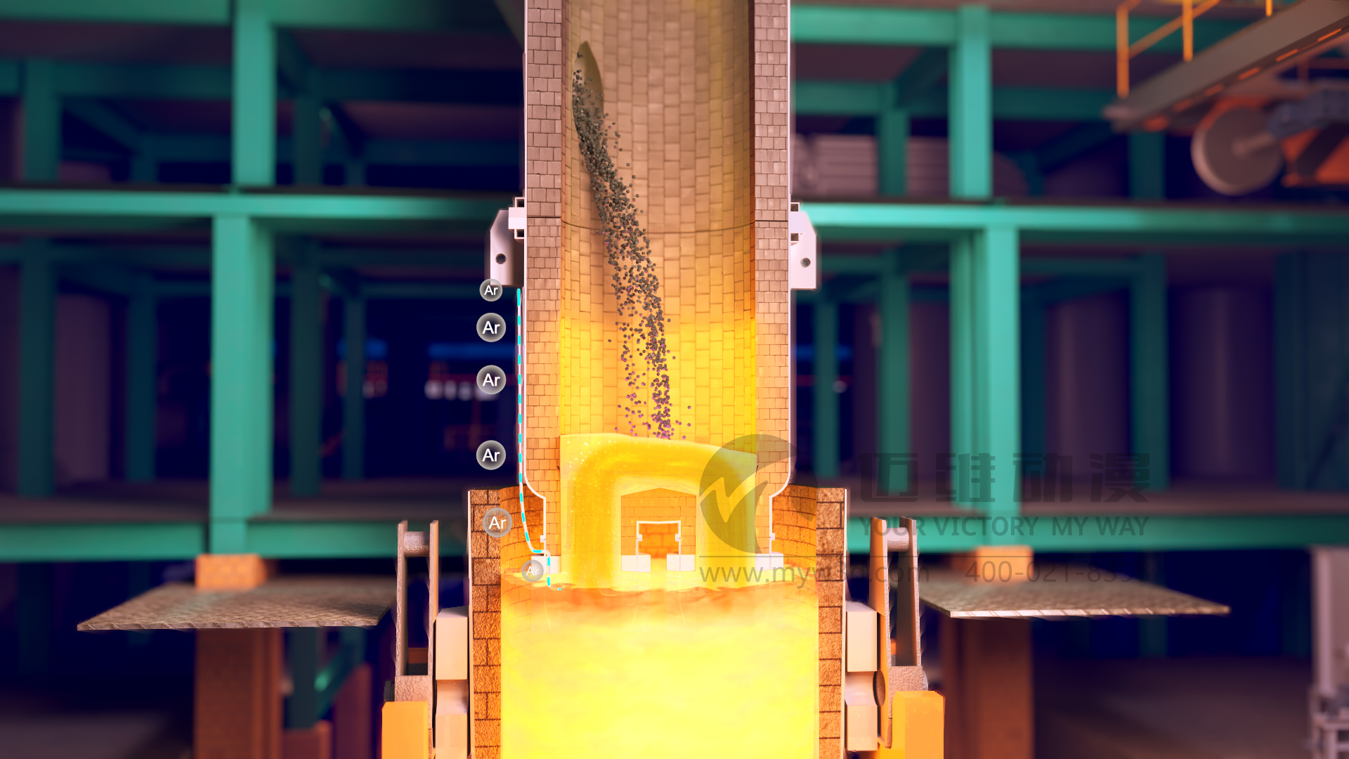 隨著現(xiàn)代工業(yè)和科學技術的發(fā)展,各行業(yè)對鋼材質(zhì)量的要求日益提高,需要鋼材具有更高的純凈度、更精準的化學成分控制等。傳統(tǒng)的電弧爐冶煉缺陷多,難以滿足相關行業(yè)對高純凈度鋼的要求,因此催生了如 VOD真空精煉爐等多種精煉工藝來提升鋼水質(zhì)量。VOD真空精煉爐是目前應用較廣的一種爐外精煉設備,在國內(nèi)外鑄鋼生產(chǎn)線中都有較多應用,可用于生產(chǎn)不銹鋼鑄件、軸承鋼、合金結構鋼、彈簧鋼、優(yōu)質(zhì)碳素鋼及超低碳不銹鋼等多種鋼種。生產(chǎn)線三維動畫作為一種高效的冶金生產(chǎn)工藝流程宣傳展示工具,可以通過3D技術,模擬還原展示從原料進入到成品鋼產(chǎn)出的整個過程,包括真空脫氣、吹氧脫碳、吹氬攪拌、加料及合金化等各個步驟,同時還能展示設備的內(nèi)部構造、工作原理等以動態(tài)的三維畫面形式呈現(xiàn)出來,讓觀眾可以直觀地看到每個環(huán)節(jié)的運作,遠比傳統(tǒng)的文字、圖片或靜態(tài)圖表更生動、形象,便于理解,深受冶金行業(yè)企業(yè)用戶的青睞。